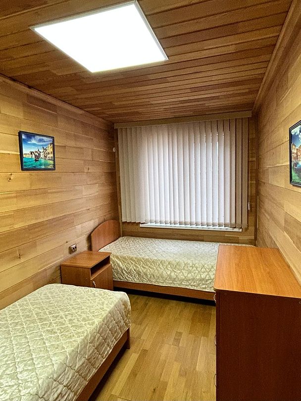 И еще одна изолированная комната, где располагаются 2 односпальные кровати.