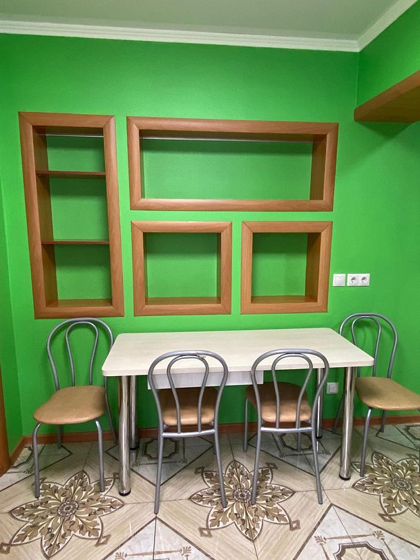 Имеется кухня/столовая: кухонный гарнитур, плита, холодильник, микроволновка, чайник и вся необходимая посуда.