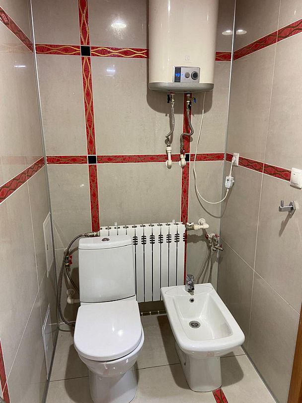 Санузел: душевая кабина, биде, умывальник